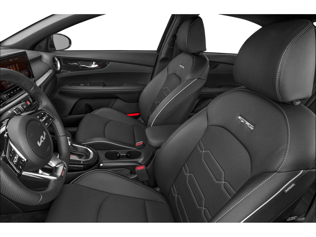 Comfort and convenience are also at the forefront of the Forte GT-Line's design. The spacious cabin, with its split-folding rear seat, allows you to easily accommodate your passengers and cargo, while the leather-wrapped steering wheel and shift knob add a touch of refinement to your daily drives.